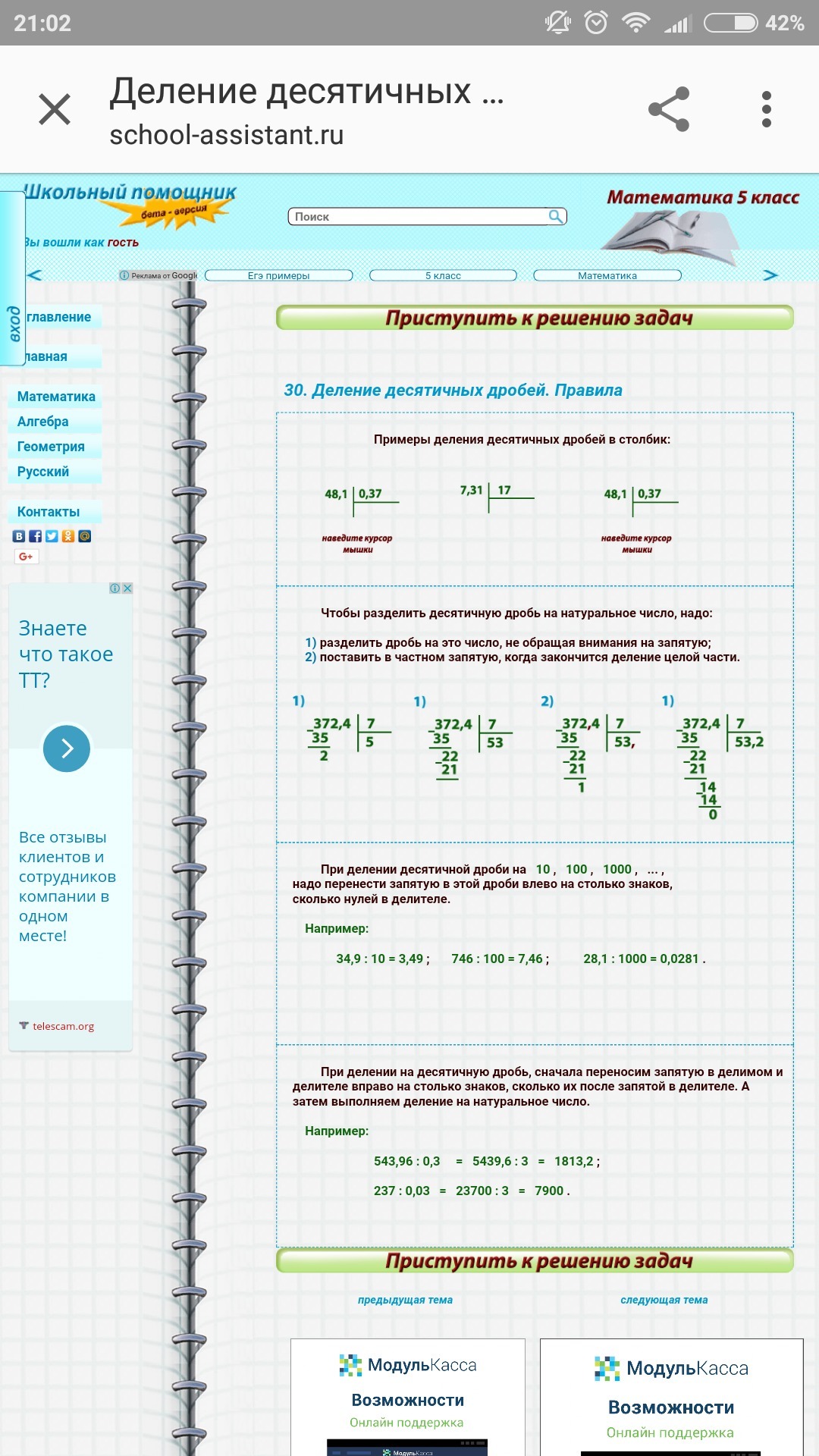 Чтобы разделить десятичную дробь на натуральное число, надо: 1) разделить десятичную дробь на число, не обращая внимания на запятую; 2) когда закончится деление целой части, в частном поставить запятую. Чтобы разделить десятичную дробь на натуральное число, делим, не обращая внимания на запятую