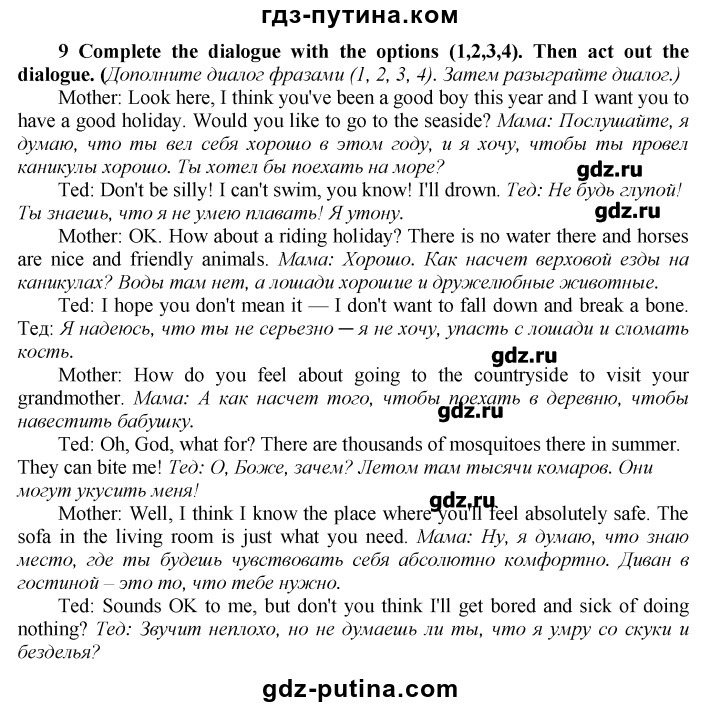 Ted: (4) It might be a good idea but I can't swim, you know! I'll drown (тонуть).