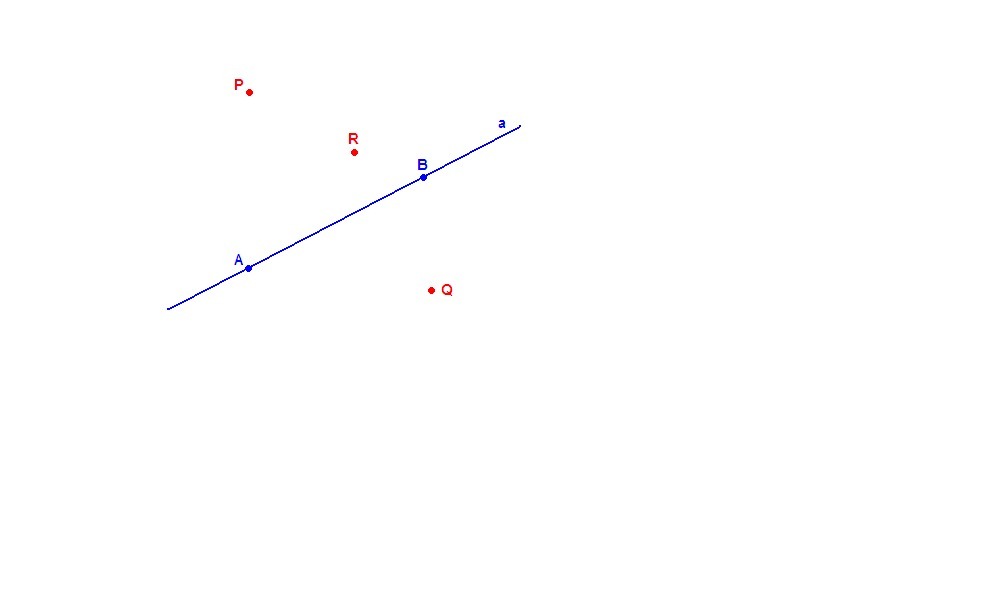 Проведите прямую, обозначьте её буквой a и отметьте точки A и B, лежащие на этой прямой, и точки P, Q и R, не лежащие на ней. Опишите взаимное расположение точек A, B, P, Q, R и прямой a, используя символы принадлежит и не пренадлежит.