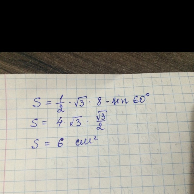 Просто используйте формулу нахождения площади треугольника по двум сторонам и углу между ними!