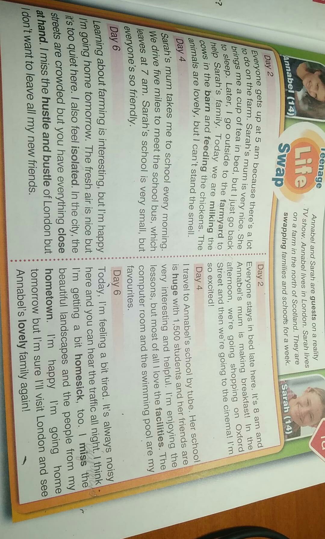 Учиться сельскому хозяйству интересно, но я всё же рада, что возвращаюсь домой завтра. Свежий воздух это хорошо, но здесь слишком тихо. Я также чувствую себя изолированной. В городе улицы переполнены, но всё необходимое находится под рукой. Я скучаю по Лондонскому шуму и суете, но я не хочу покидать всех моих новых друзей.