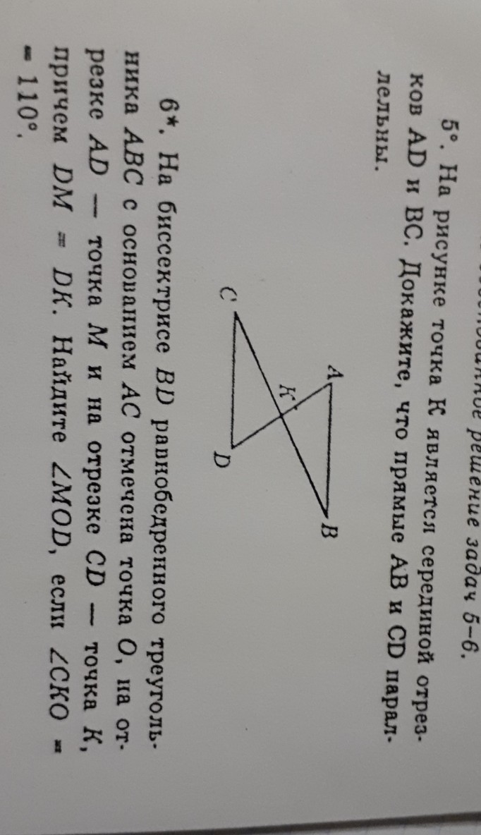 рассмотрим треугольникиАКВ и ДКС, углы с вершиной К - вертикальные, следовательно, она равны. Значит по первой теореме равны и эти треугольники. Отсюда следует, что угол А равен углу Д. А и Д - накрест лежащие углы, они равны, следовательно АВ║СД