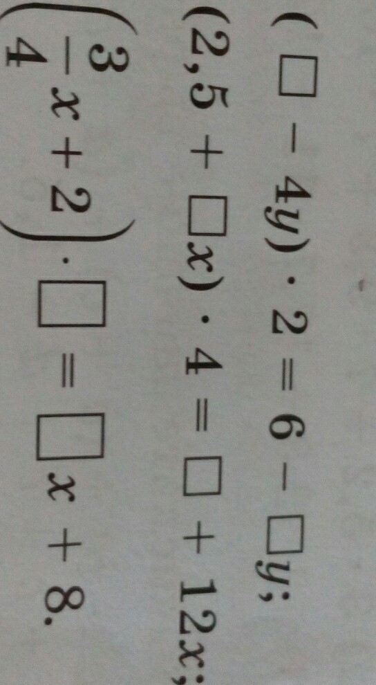 замените рамочки такими числами,чтобы равенство выражало распределительные свойство умножения.Желательно все 3.