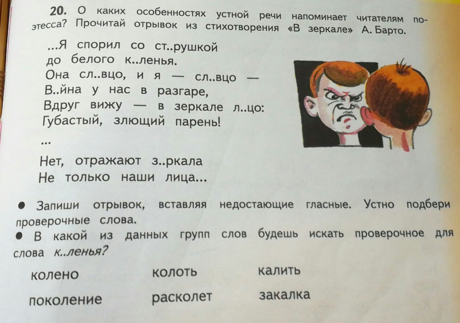Я спорил со старушкой До белого каленья. Она словцо, и я словцо — Война у нас в разгаре! Вдруг вижу в зеркале лицо —