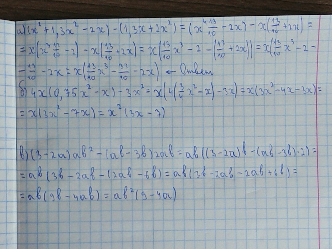 а) (x^2+1,3x^2-2x)-(1,3x+2x^2)