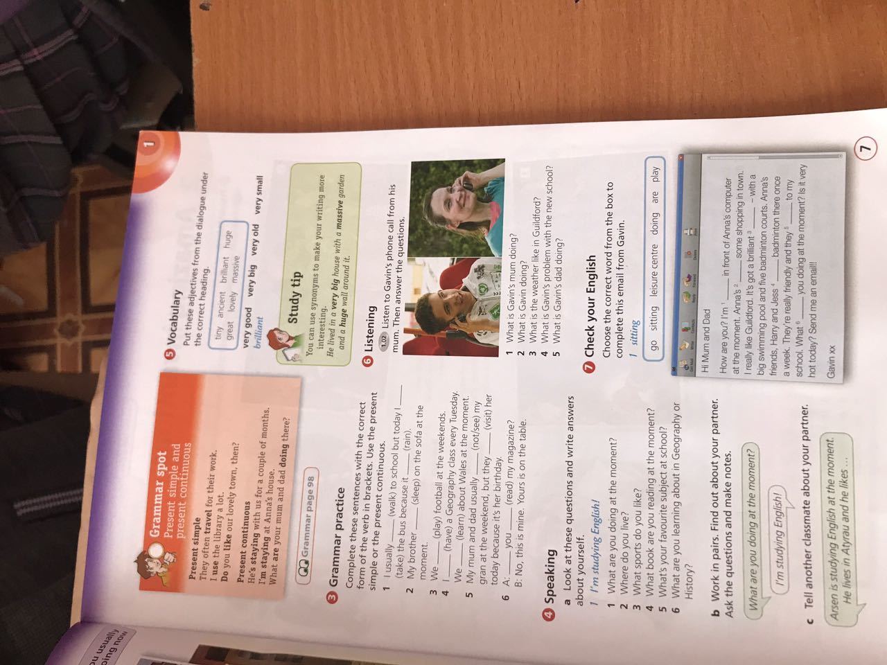 1 sitting 2 doing 3 leisure centre 4 play 5 go 6 are