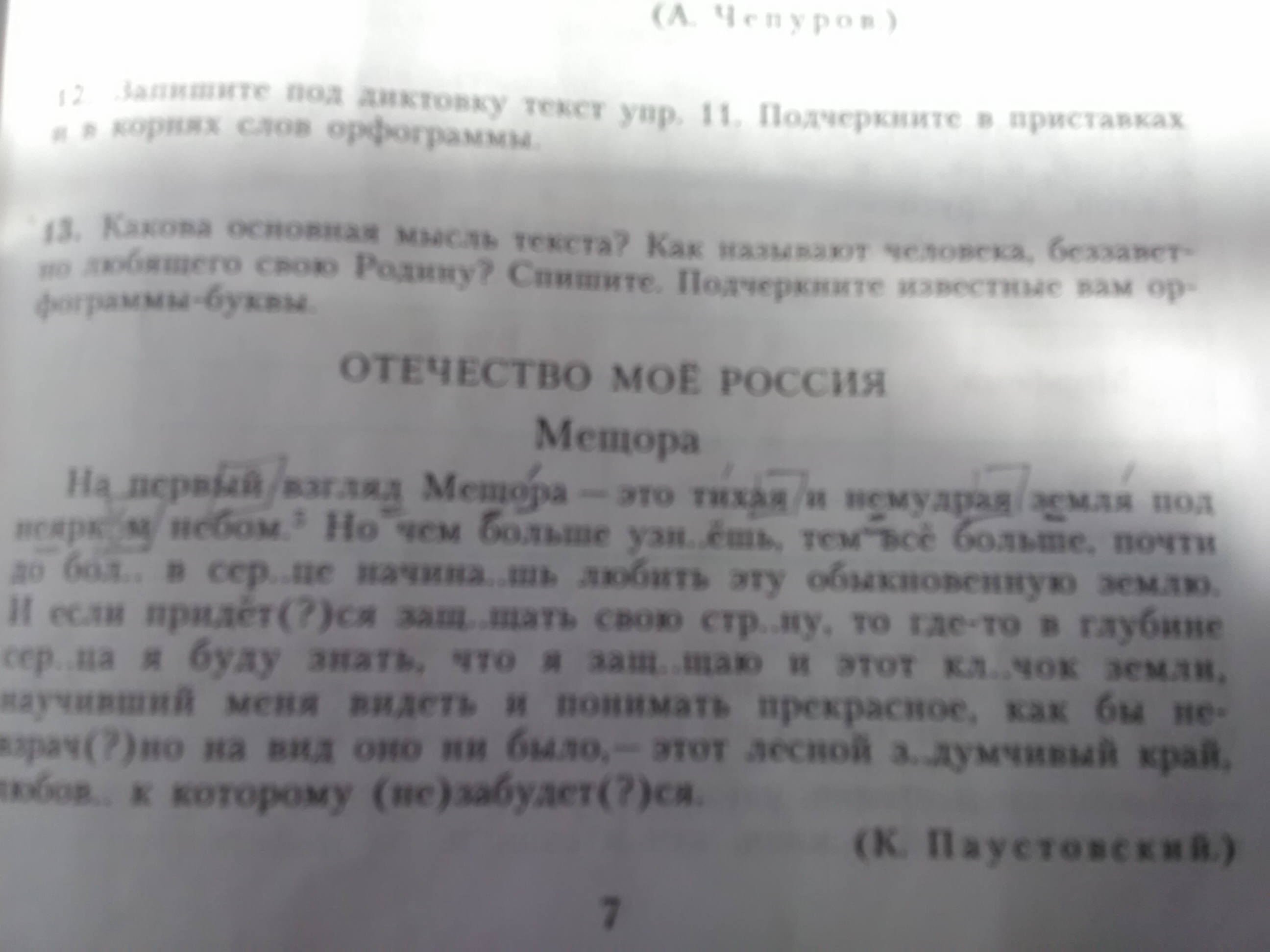 На первый взгляд Мещора — это тихая и немудрая земля под неярким небом. Но чем больше узнаёшь, тем всё больше, почти до боли, в сердце начинаешь любить эту обыкновенную землю. И если придёться защищать свою страну, то где-то в глубине сердца я буду знать, что я защищаю и этот клочок земли, научивший меня видеть и понимать прекрасное, как бы невзрачно на вид оно ни было,— этот лесной задумчивый край, любовь к которому не забудется.