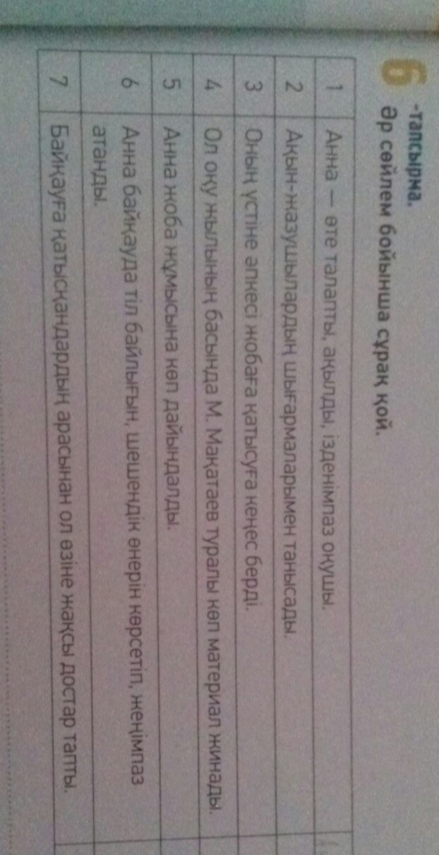 Әр сөйлемге сұрақ қою.