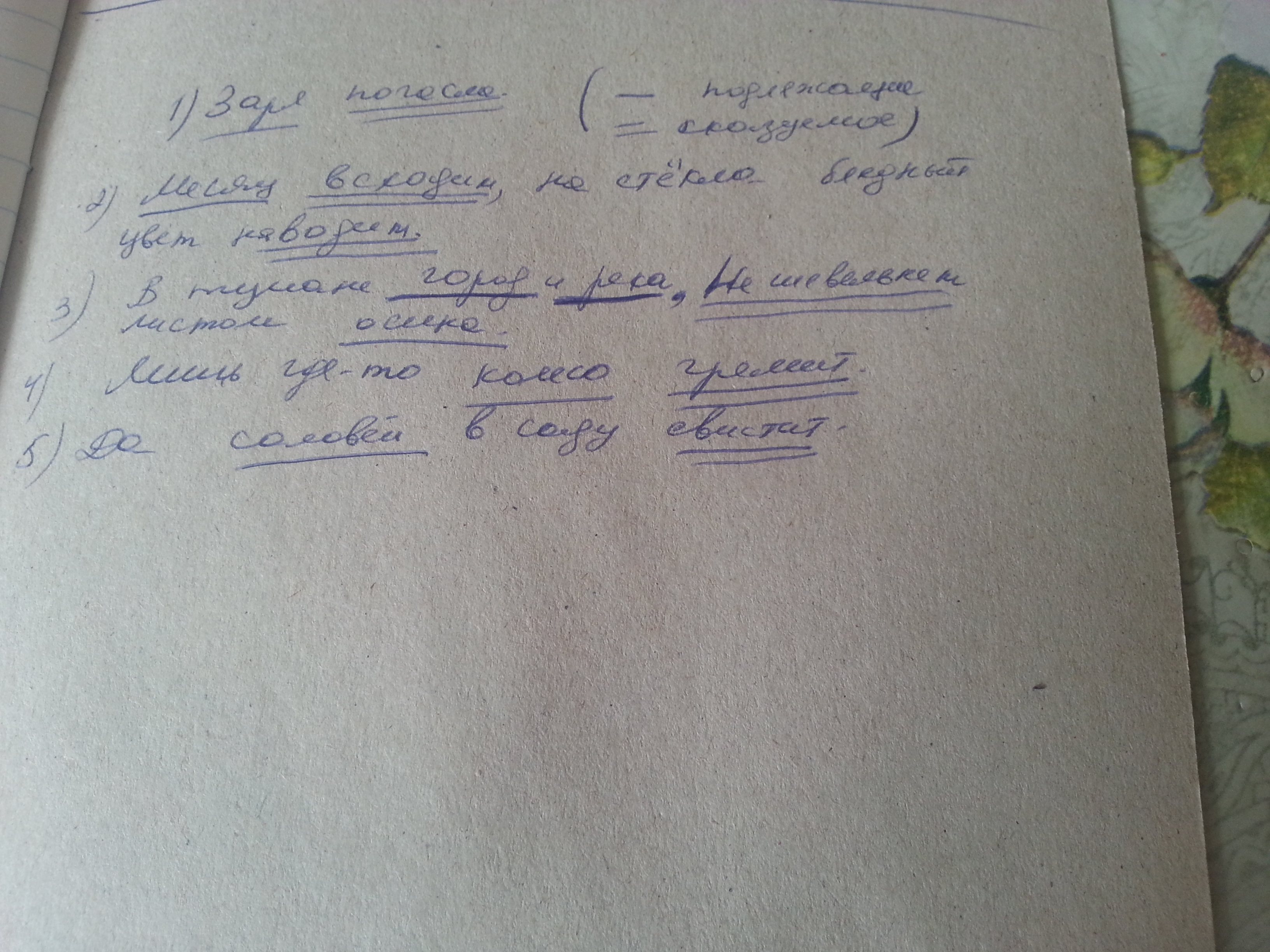 Разберите предложения по главным членам предложения. Заря погасла.Месяц всходит , На стёкла бледный цвет наводит За лес свалились облака В тумане город и река Не шевельнет листом осина Лишь где то колесо гремит Да соловей в саду свистит .