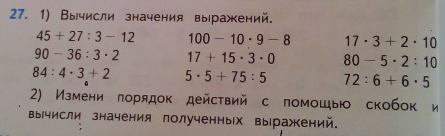 45+27:3-12= 42 (45+27) : 3-12= 12