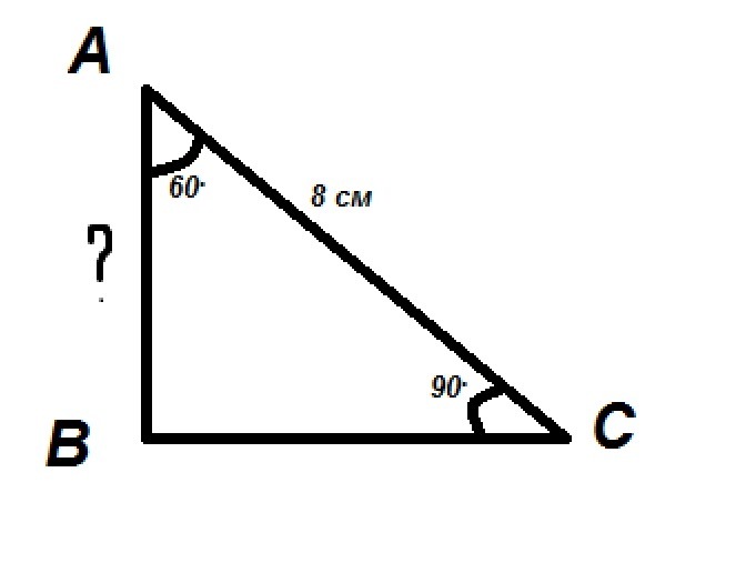 В треугольнике ABC угол C равен 90° , угол A равен 60° , АС = 8 см.
