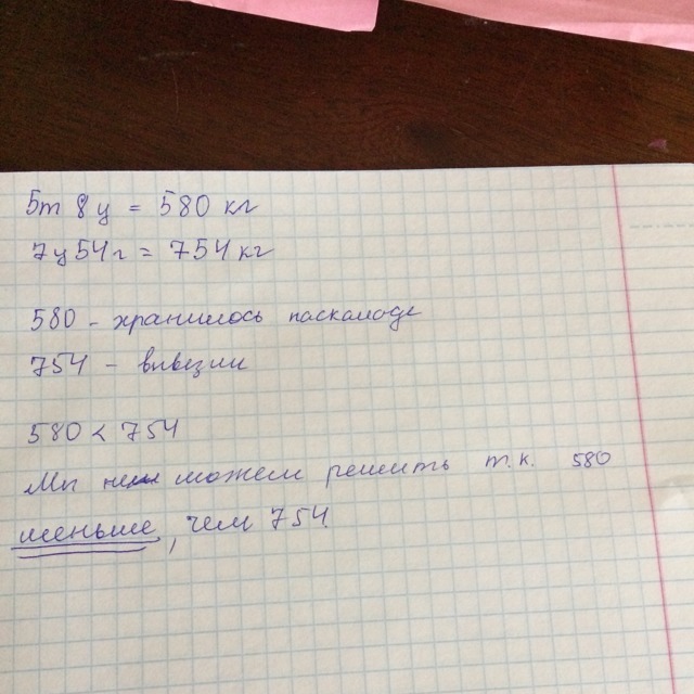 На складе хранилось 5 т 8 ц овощей. В первый день вывезли 7 ц 54 кг, а во второй в 2 раза меньше, чем в первый. Сколько овощей осталось на складе ?