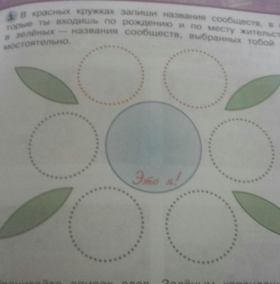 в красных кружках семья,страна.в зелёных:школа,команда,друзья,кружки