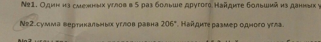 Сумма вертикальных углов равна 206 . Найдите размер одного угла. Помогите.
