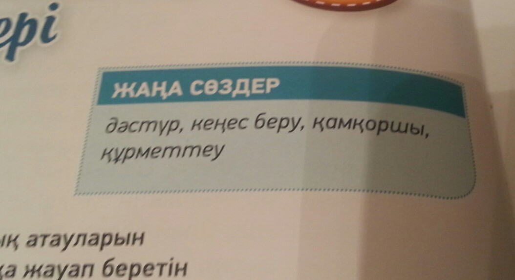 дәстүр - традиция , кеңес беру - дать совет , ,құрметтеу - уважать