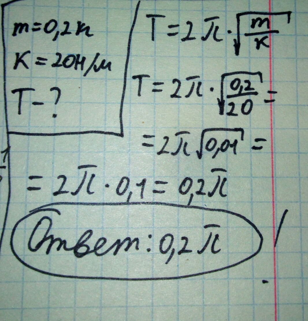 коэффициент жесткости пружины 20H/m ,кг 0,2 масса груза, то к нему размещена , какие пружинного маятника период колебаний