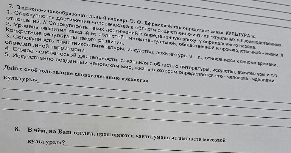 Экология культуры - это сохранение культурной среды,которая необходима человеку для его духовной,нравственной жизни,для любви к родным местам,"к заветам предков,для его нравственной самодисциплины и социальности ".
