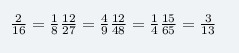 Пятнадцать шестьдесят пятые = три тринадцатые