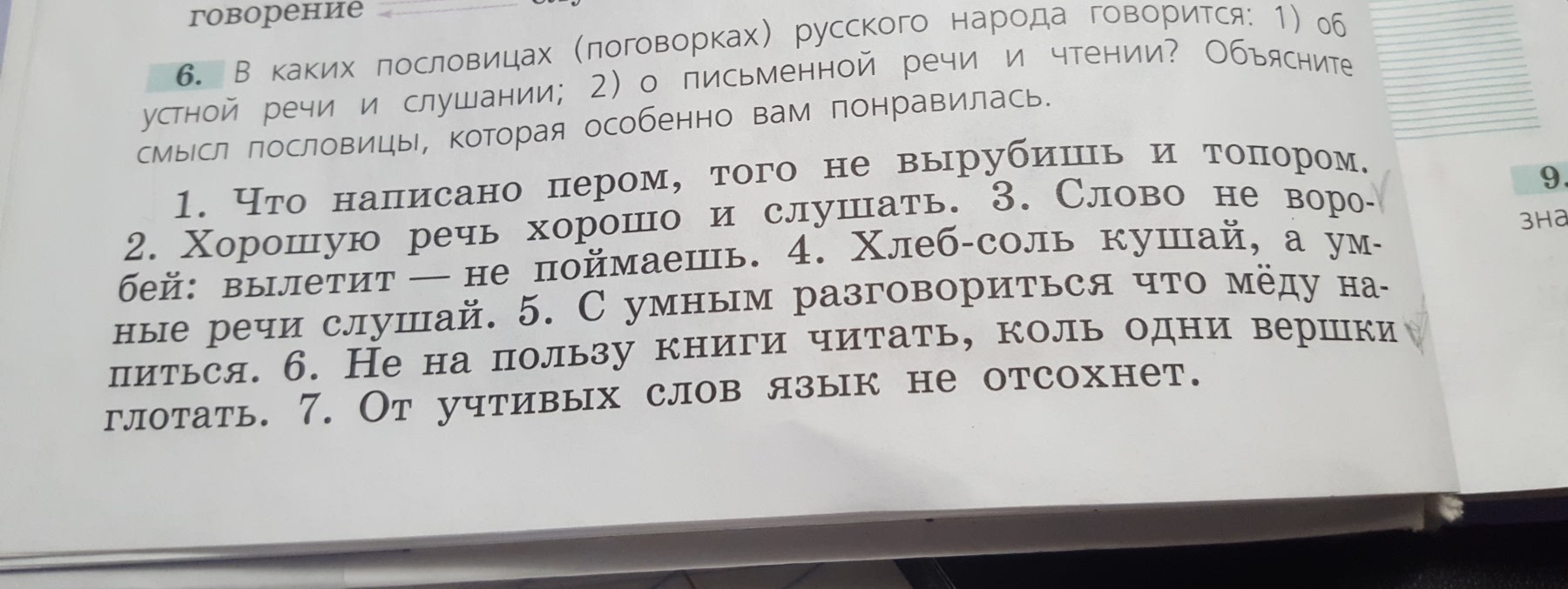 в каких пословицах( поговорках) русского народа говорится:1) об устной речи и слушании; 2) о письменной речи и чтении? Объяснить смысл пословицы, которая особенно вам понравилась. Люди помогите пожалуйста