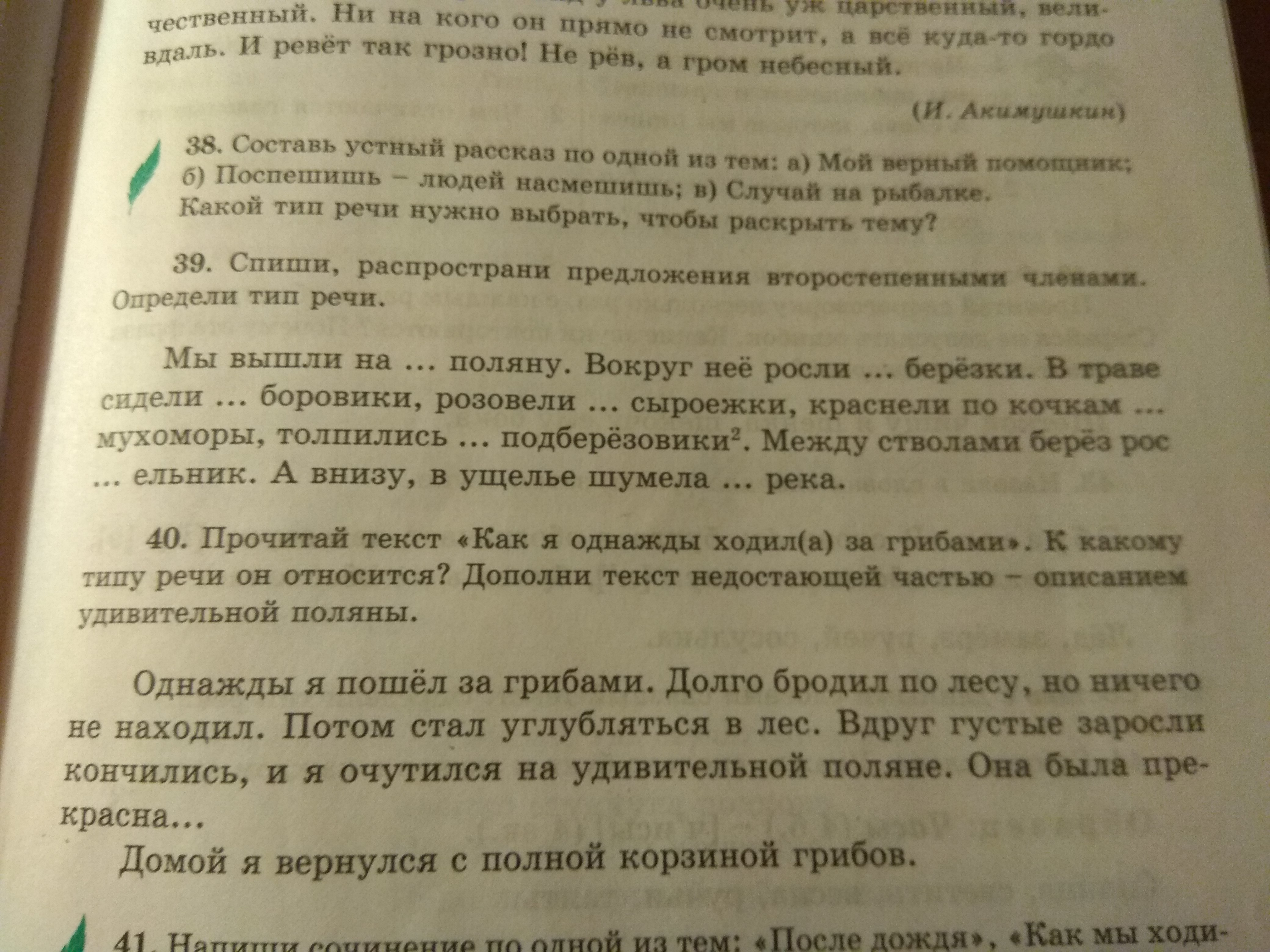 огромную;стройные; прячась; в кустах; красивые; гурьбой(семейкой); мохнатый; бурная. тип речи: повествование