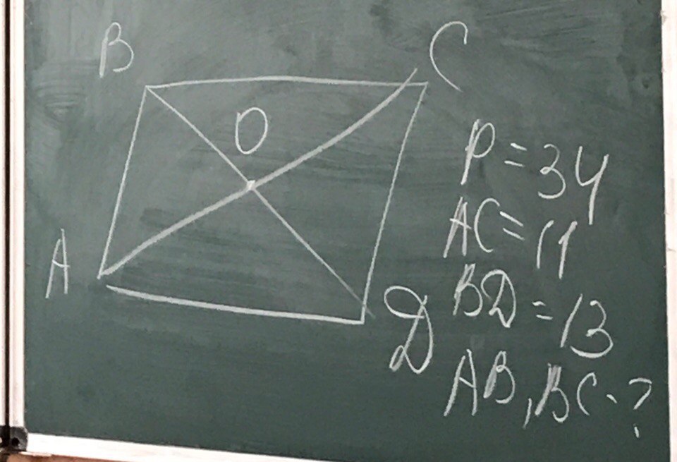 Вобщем-то т.О делит АС и ВД пополам,т.е, АО=5,5;ВО=6,5.