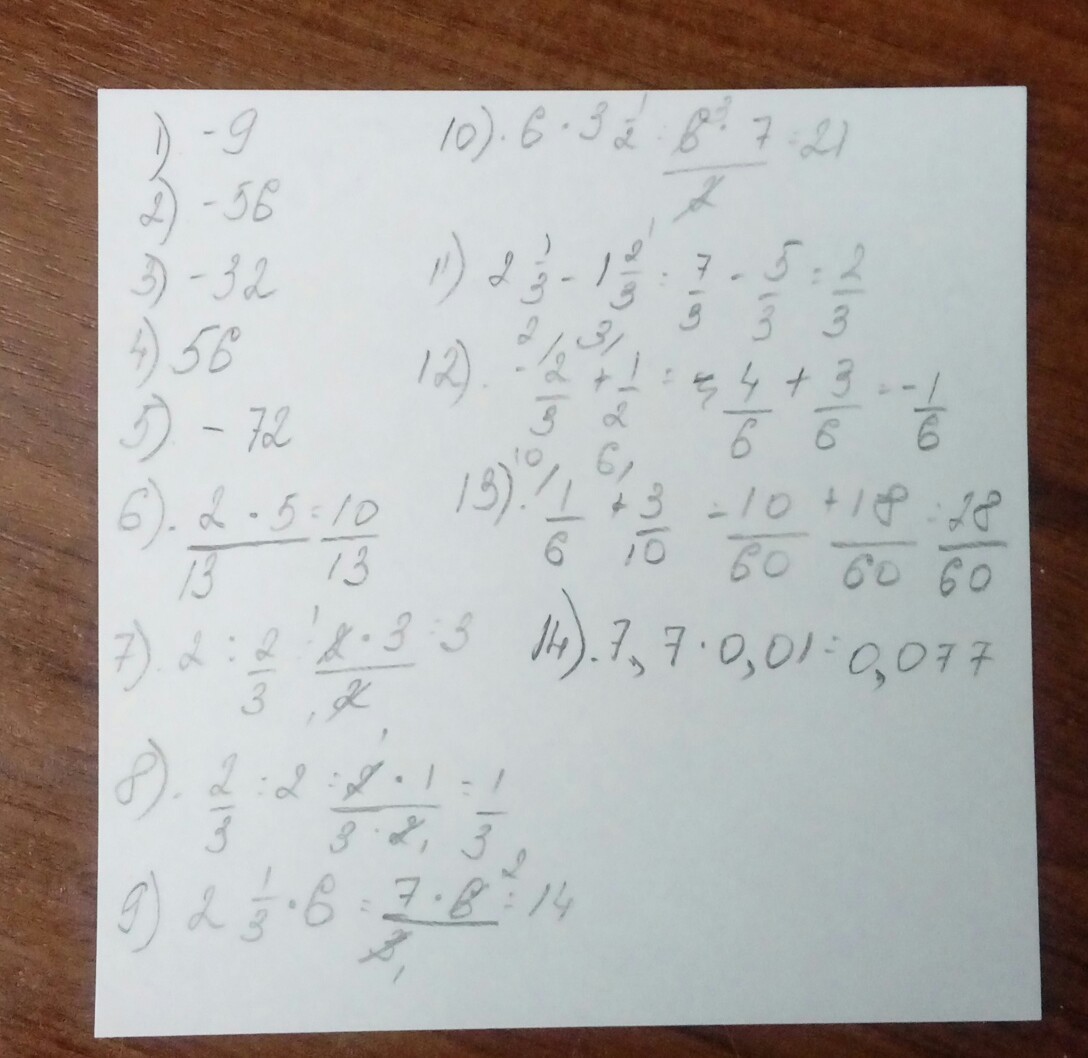1. 1) -9; 2) -56; 3) -32; 4) 56; 5) -72; 6) 10/13;
