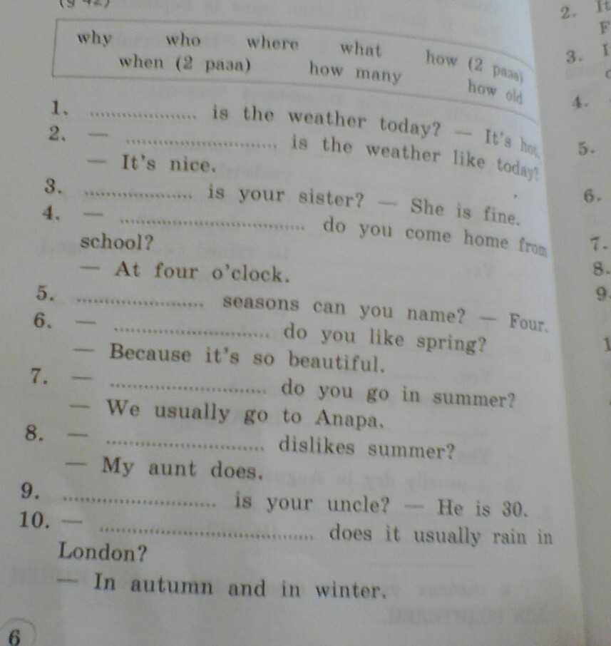 1 how 2 what 3 how 4 when 5 how many 6 why 7 where 8 who 9 how old 10 when