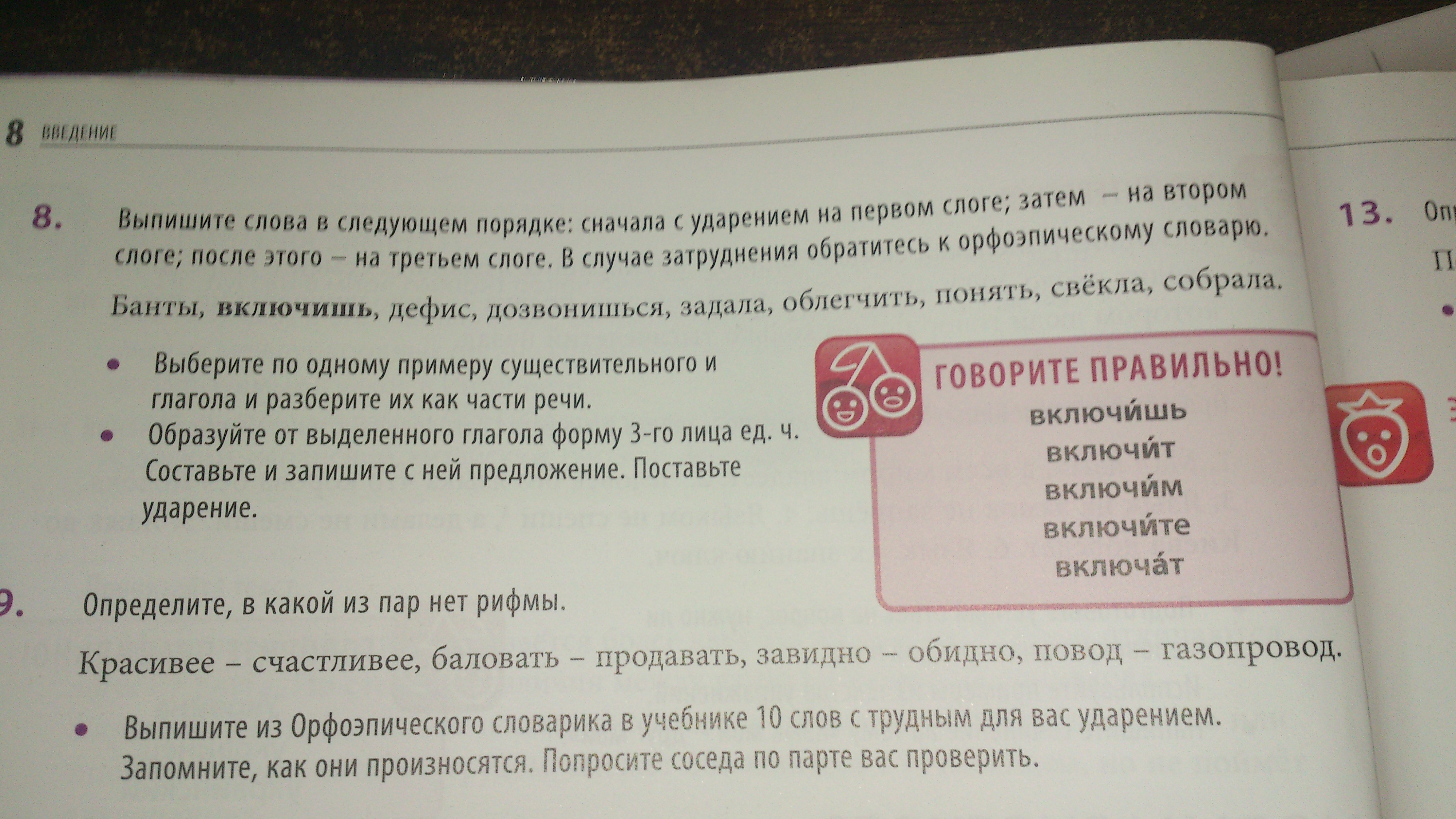 1 задала,свёкла. 2 банты,включишь,дефис,дозвонишься,понять, 3 облегчить,собрала