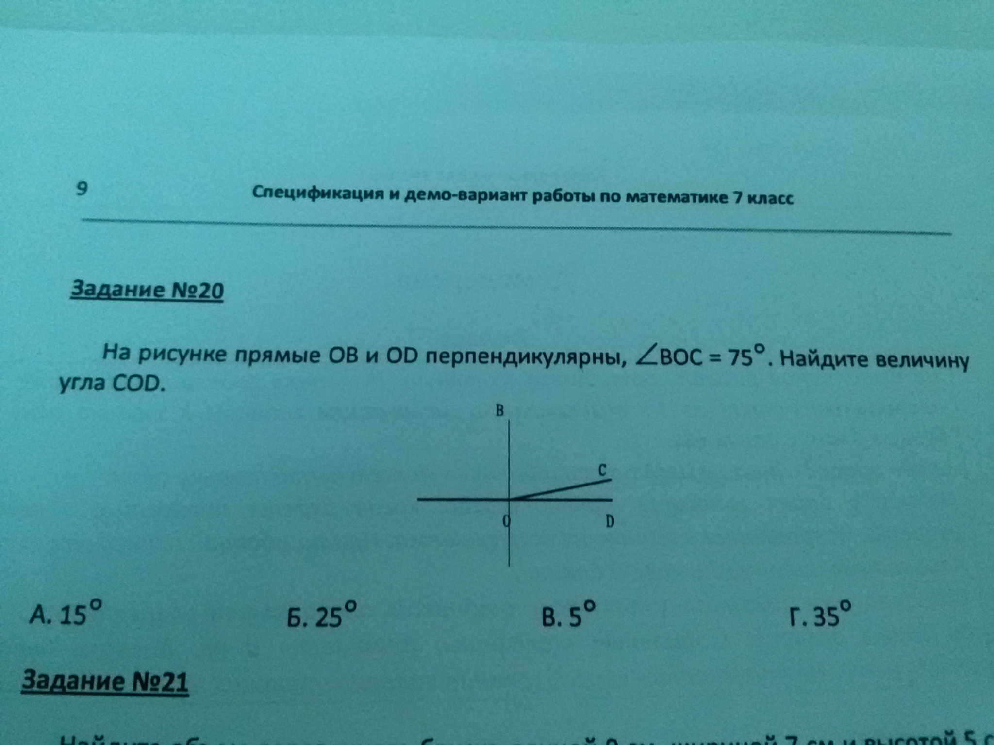 ∠COD = ∠BOD - ∠BOC = 90° - 75° = 15°