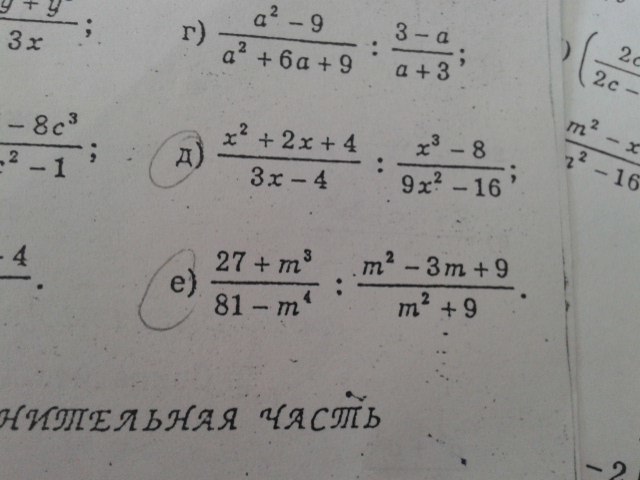27+м³81-м^4 : м²-3м+9м²+9= (3+м)*(м²-3м+9)(9-м²)(9+м²) * (м²+9)(м²-3м+9)=3+м9-м²=3+м (3-м)(3+м)=13-м