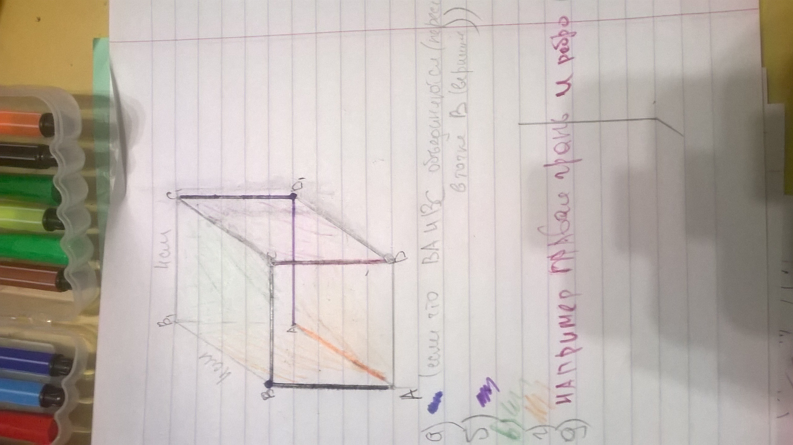 Нарисуй куб ABCDA1B1C1D1. Выделите цветом объединение :а)рёбер ВА и ВС; б) рёбер А1D1, D1C1, CC1;в) верхней и задней граней; г) левой , нижней и правой граней ; д) какой-либо грани и рёбра , имеющего с ней общую вершину.Заранее огромное спасибо))