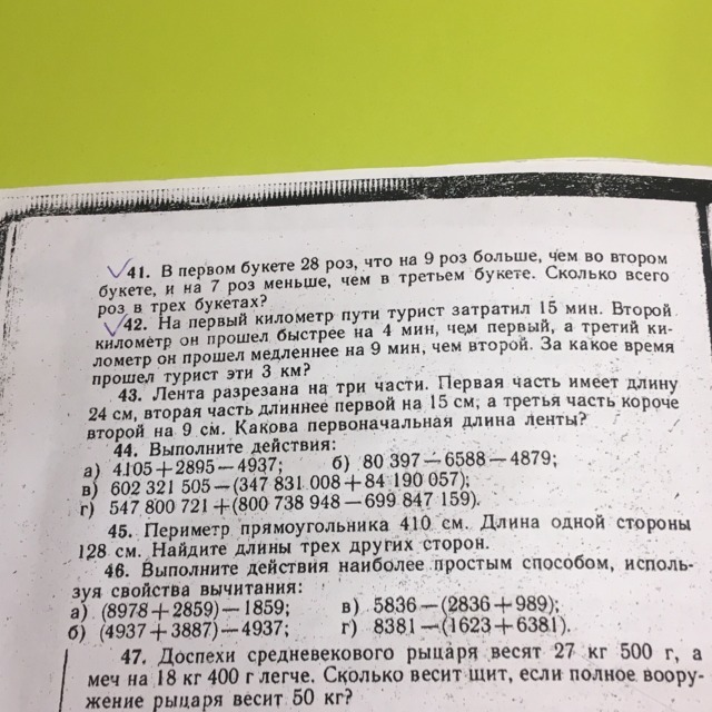 Из условия нам известно, что второй километр был пройден на 4 минуты быстрее, тогда мы должны найти разность между временем за первый километр и 4 минутами: 15 - 4 = 11 минут были потрачены на второй километр. Найдем, сколько времени ему потребовалось на последний километр, зная, что он шёл медленнее на 9 минут, тогда сложим эти два значения: 11 + 9 = 20 минут Сложим все три значения, чтобы найти общее время: 15 + 11 + 20 = 46 минут Ответ: 46 минут.