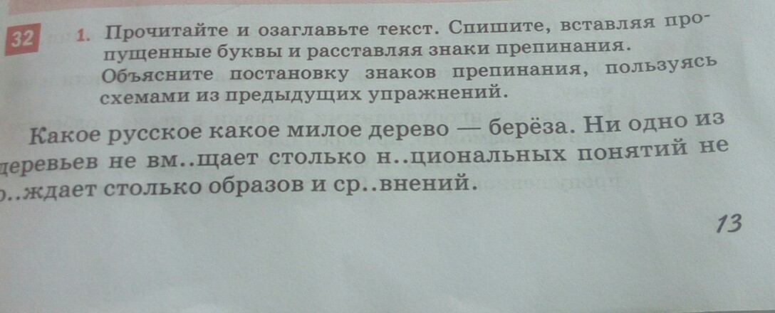 упражнение 32 Прочитайте Озаглавьте текст спишите вставляя пропущенные буквы расставляя знаки препинания схематично и предыдущим упражнением