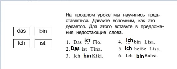 На прошлом уроке мы научились представляет Давайте вспомним как это делается для этого Вставьте предложения недостающие буквы Das bin Ich Ist на немецком