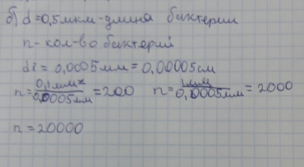 Длина одной из бактерий равна 0,5 мкм. сколько таких бакерий уложилось бы влотную на длине 0,1 мм; 1мм; 1см?