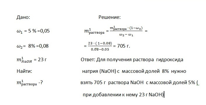 Определите массу 5%-го раствора гидроксида натрия , который нужно взять, чтобы при растворении в нём ещё 23г. NAOH получить 8%-ный раствор.