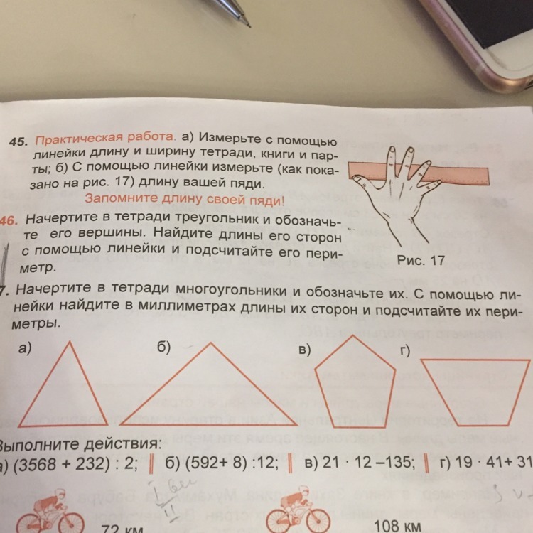 1)возьми линейку,и измерь стороны фигуры.