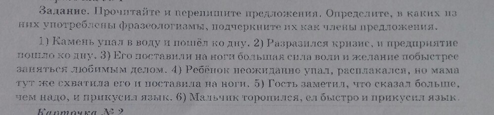 2 Пошло ко дну 3 Поставили на ноги 5 Прикусил язык
