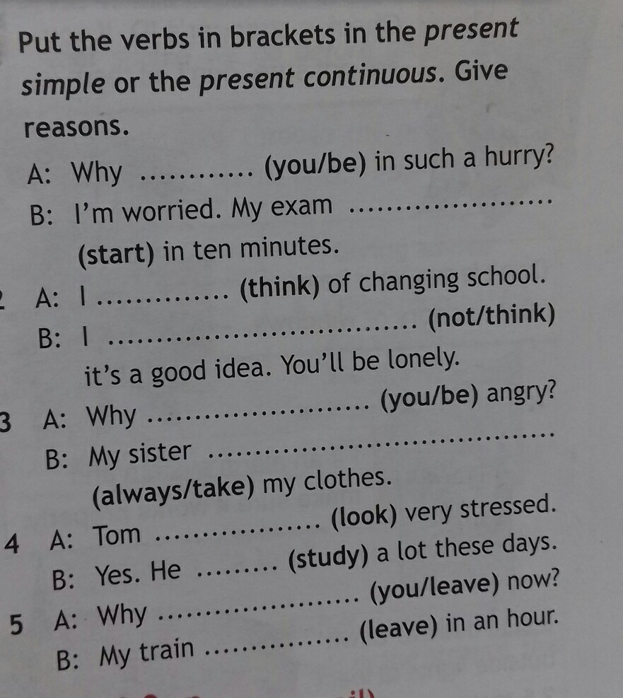 1-are you;2-is starting;3-think;4-don't think;5-are you;6-always takes;7-looks;8-study's;9-are you;10-leaves