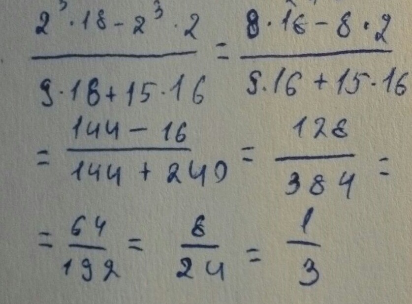 2^3*(18-2)/16*(9+15)=8*16/16*24=1/3. Ответ: 1/3.