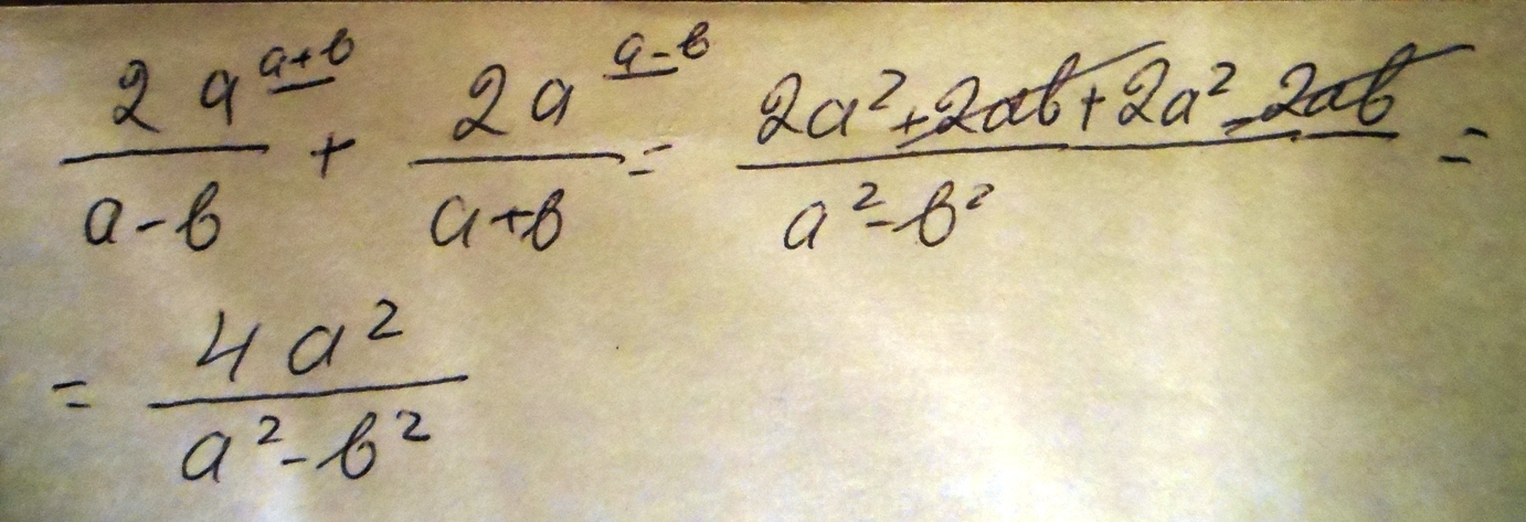 2a 2a 2a(a+b) + 2a(a-b) 2a^2+2ab+2a^2-2ab 4a^2