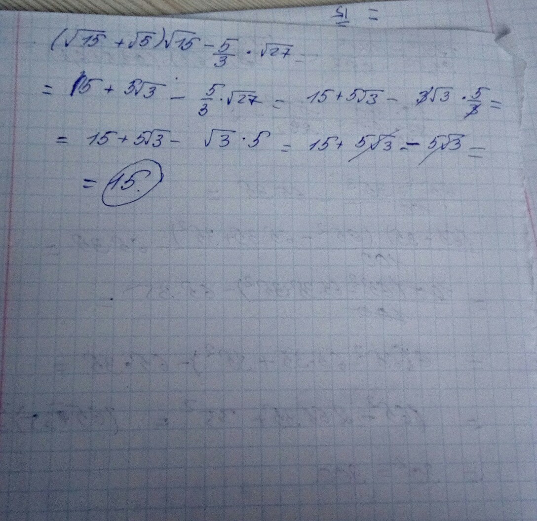 Корень из 15 на корень из 15 даёт 15, если не понятно)