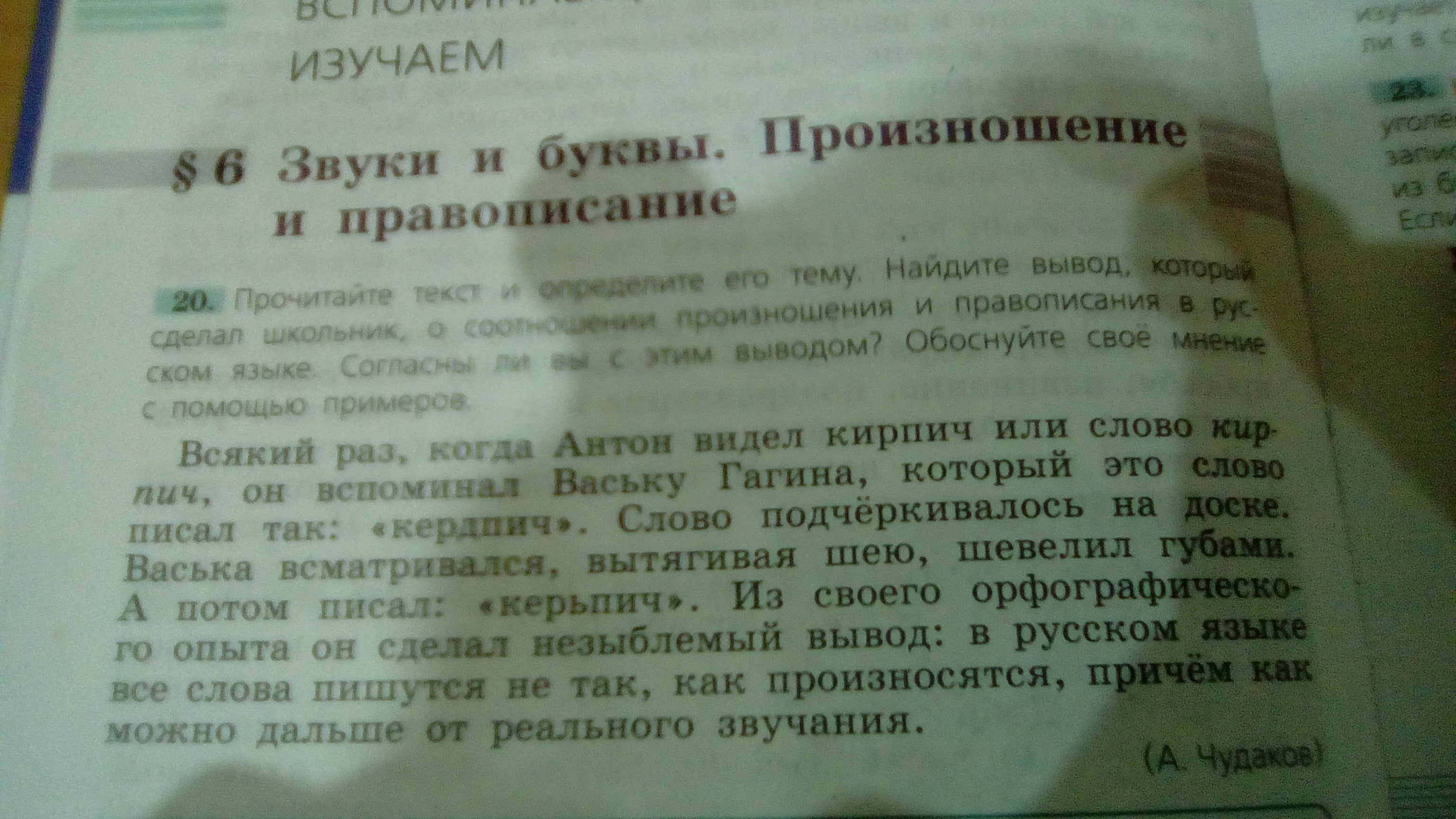 С данным выводом можно одновременно согласиться и не согласиться. С одной стороны, мальчик прав. Как часто мы делаем ошибки в словах, которые пишем, как слышим. Например: слышим здаров, а нужно писать здоров (сочетание оро) или слышим брофь, а нужно писать бровь (проверочное слово: брови) и т.д. Но, с другой стороны, с выводом Васьки нельзя согласиться, так как в русском языке слова пишутся в соответствии с определенными правилами. И зачастую согласные в словах пишутся так, как слышатся, кроме случаев с непроизносимыми согласными и изменения звучания согласного из-за его положения в слове. Эти и многие другие случаи можно проверить с помощью проверочных слов и орфографических словарей. Беда героя в том, что он не учил правила и все слова писал по интуиции, не сверяясь со словарями.