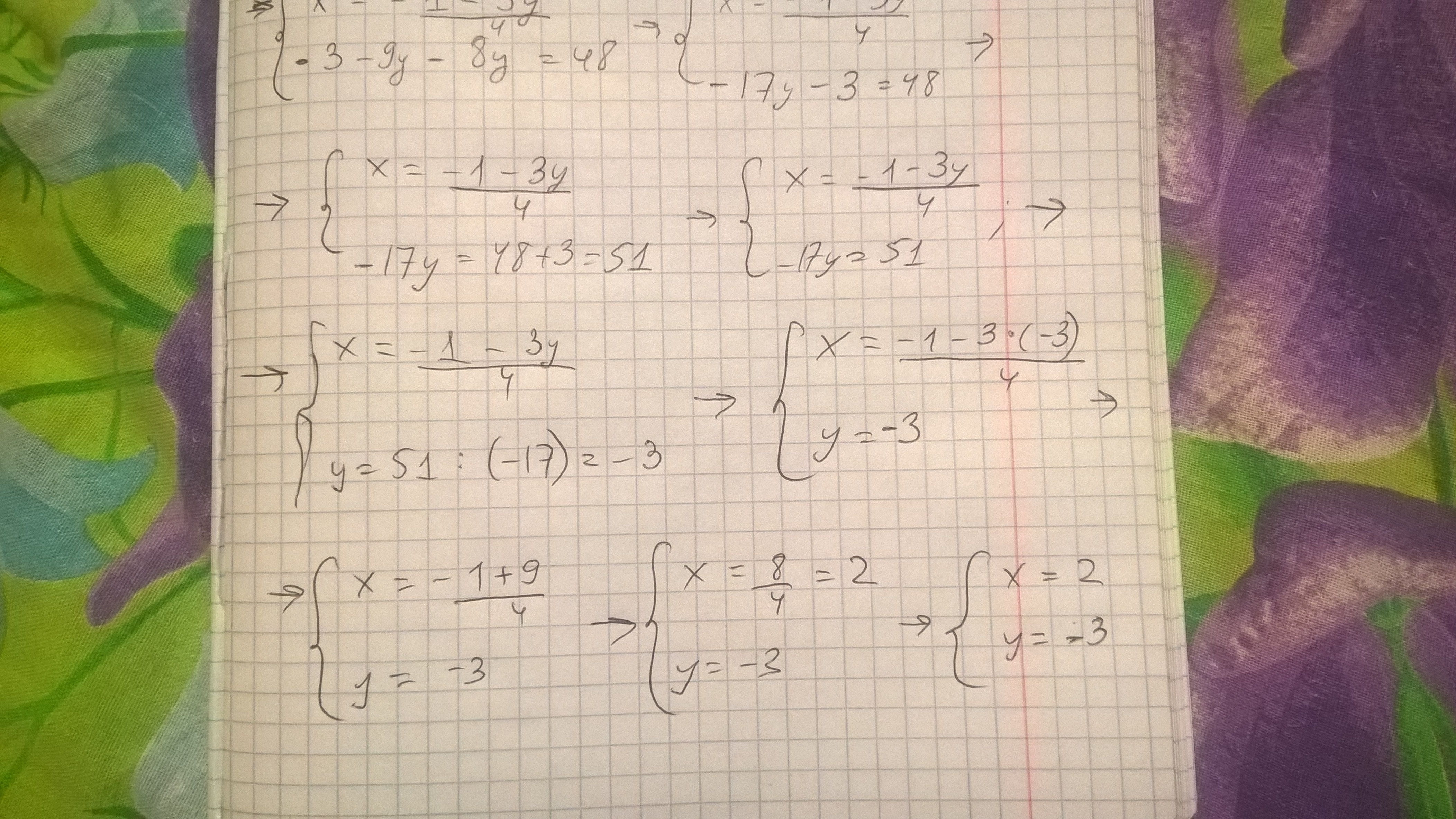 8.5х=17, отсюда х=2. тогда у =1.5х-6=1.5*2-6=-3
