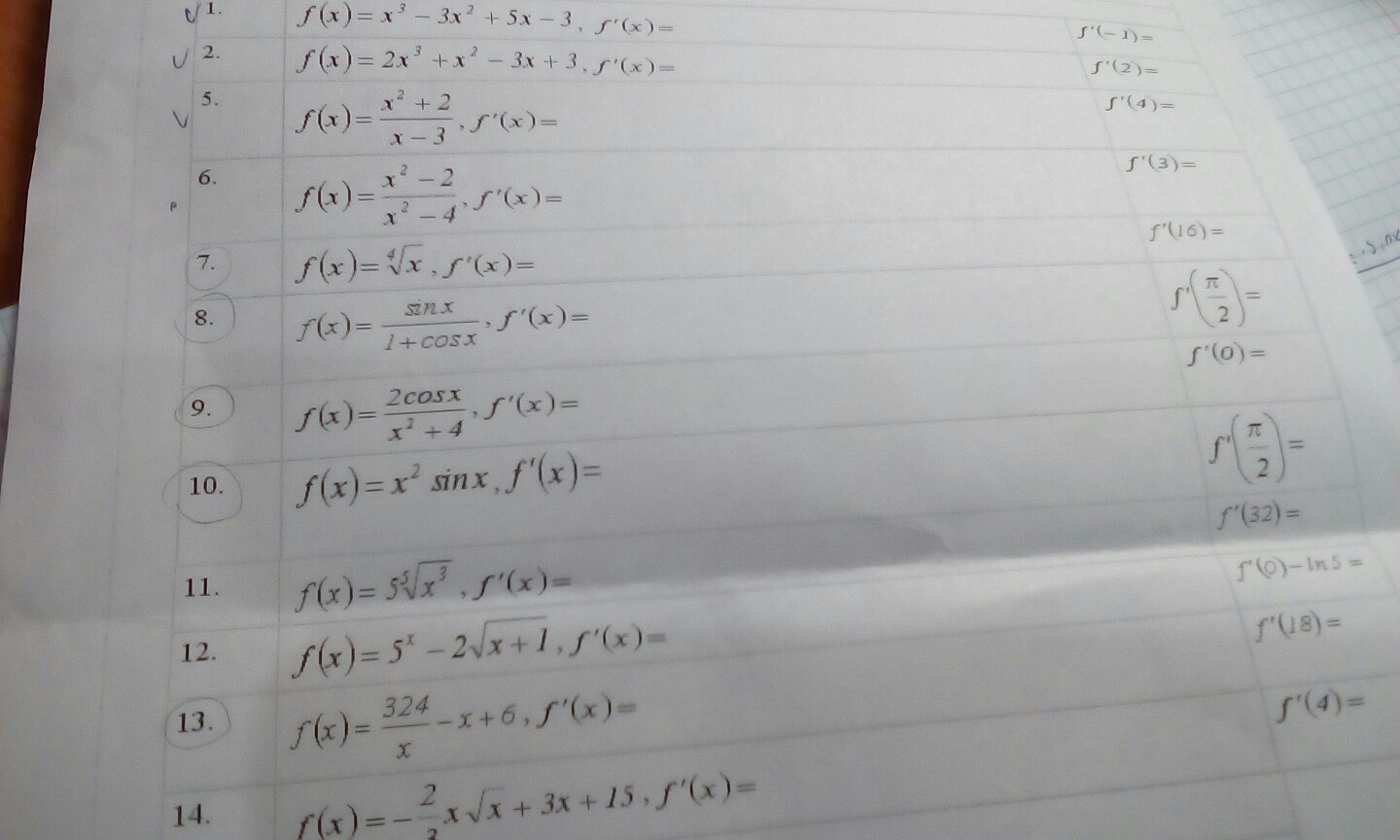 7) Надо применить общую формулу производной выражения в степени.