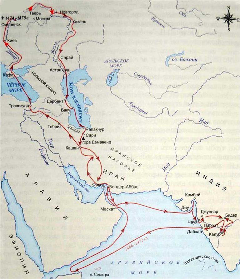 Географические объекты, через которые прошла экспедиция Афанасия Никитина: