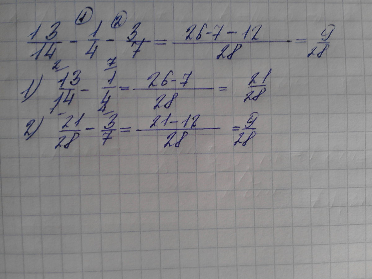 13/14-1/4-3/7= 26/28-7/28-12/28=7/28=0,25