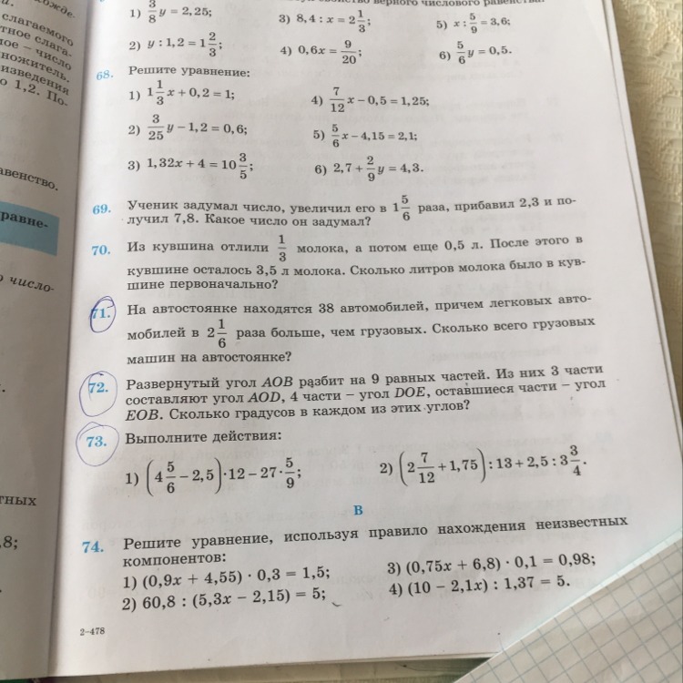 пусть x грузовых авто на стоянке, тогда легковых будет 2 целых 1/6x, а всего на стоянке x + 2 целых 1/6x=38. 2 целых 1/6 это 13/6.