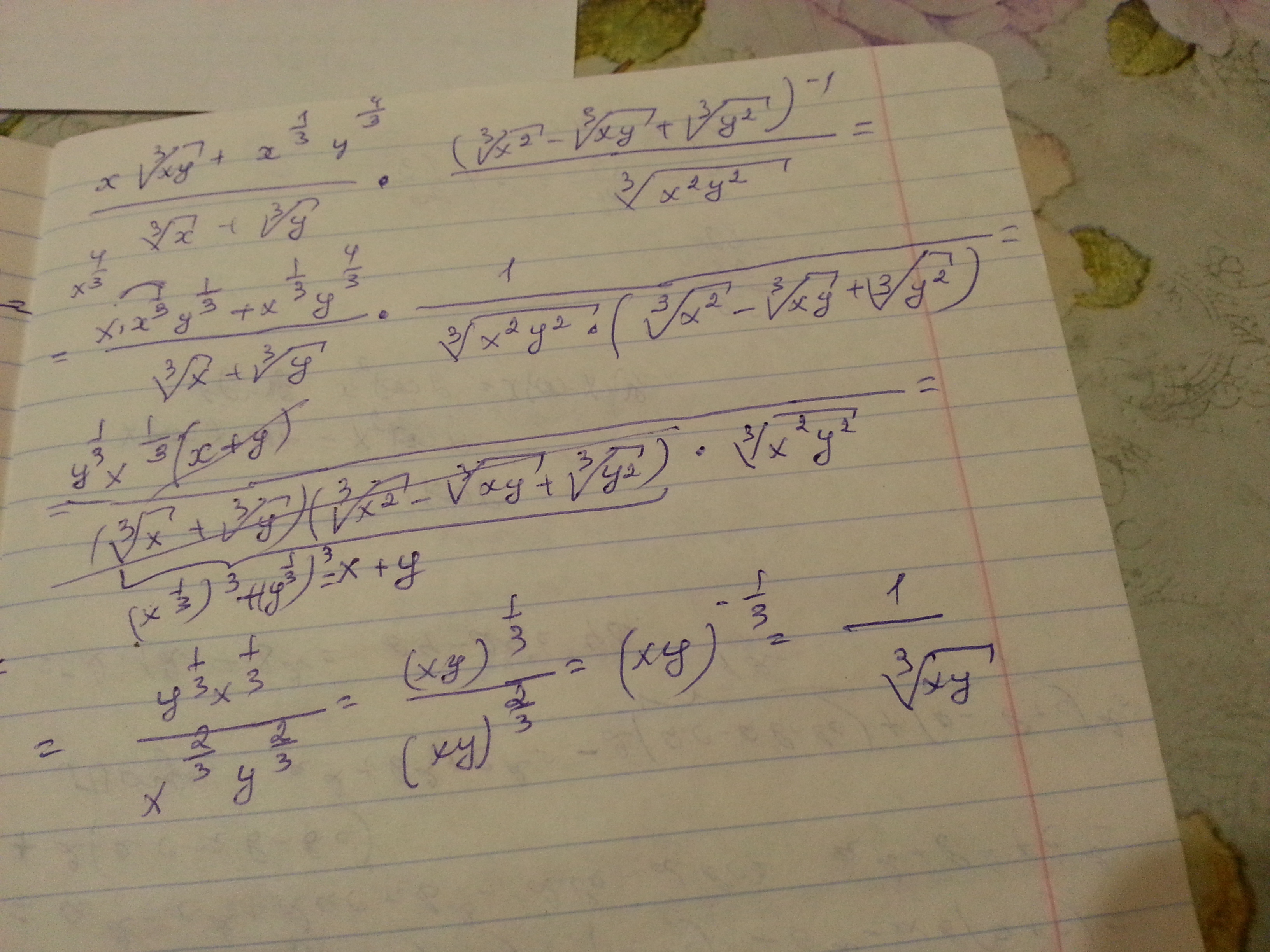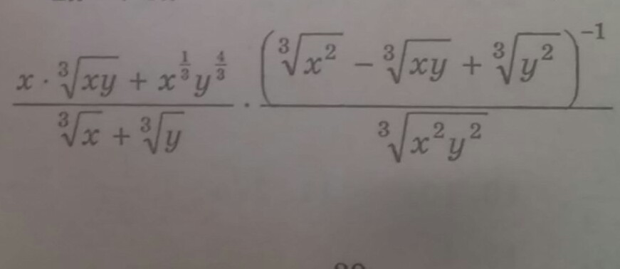 (x∛(xy)+y∛(xy))/(∛x+∛y)*(∛x²-∛(xy)^-1/∛x²y²)=