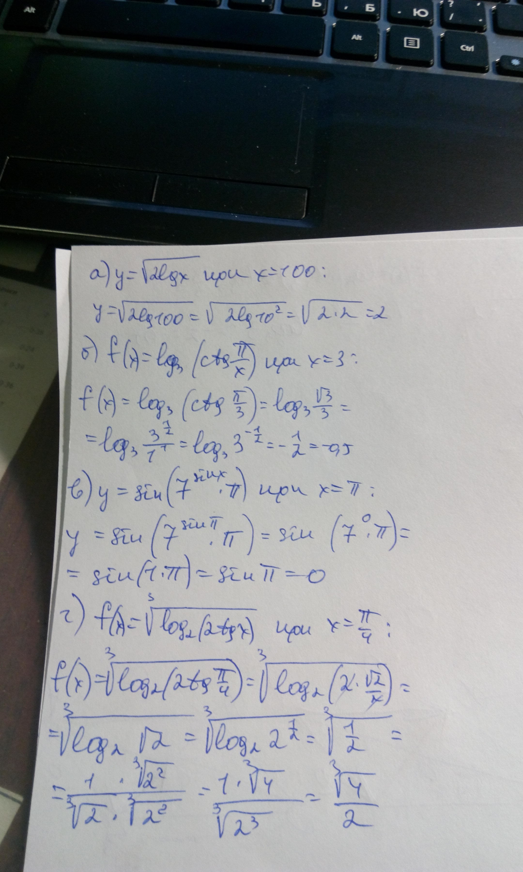 f(x)=∛(log(2)(2tgπ/4))=∛(log(2)2)=∛1=1